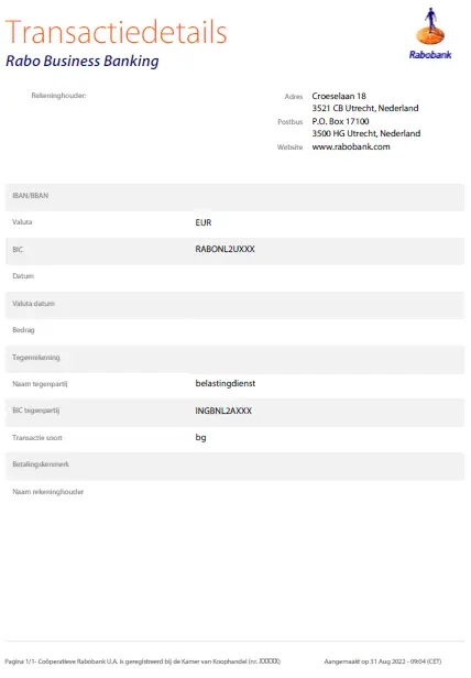 - Een bankafschrift van de betaling van de genoemde eindheffingen.